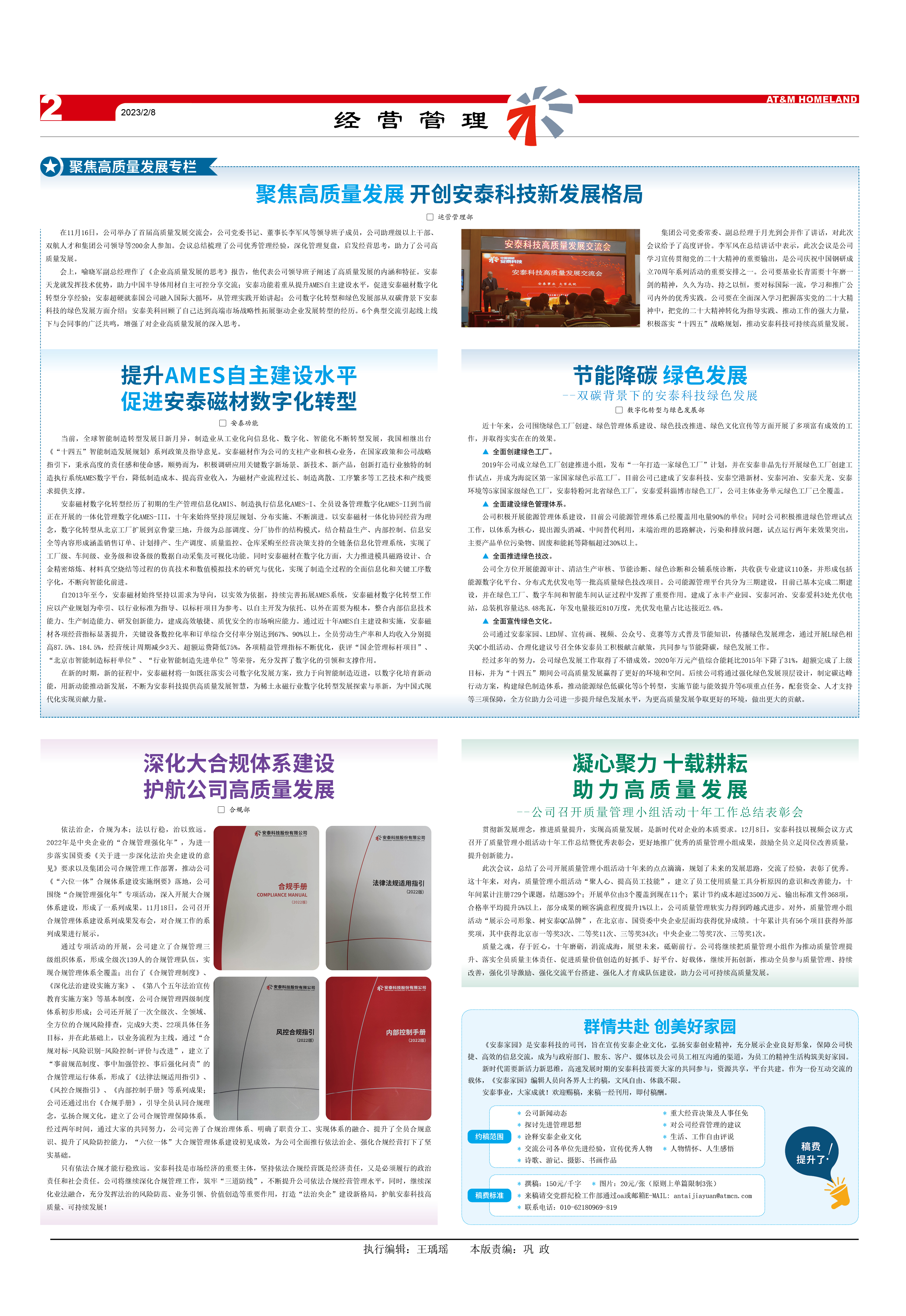 会上,喻晓军副总经理作了《企业高质量发展的思考》报告,他代表完美(中国)领导班子阐述了高质量发展的内涵和特征。安泰天龙就发挥技术优势,助力中国半导体用材自主可控分享交流;安泰功能着重从提升AMES自主建设水平,促进安泰磁材数字化转型分享经验;安泰超硬就泰国完美(中国)融入国际大循环,从管理实践开始讲起;完美(中国)数字化转型和绿色发展部从双碳背景下安泰科技的绿色发展方面介绍;安泰美科回顾了自己达到高端市场战略性拓展驱动企业发展转型的经历。6个典型交流引起线上线下与会同事的广泛共鸣,增强了对企业高质量发展的深入思考。