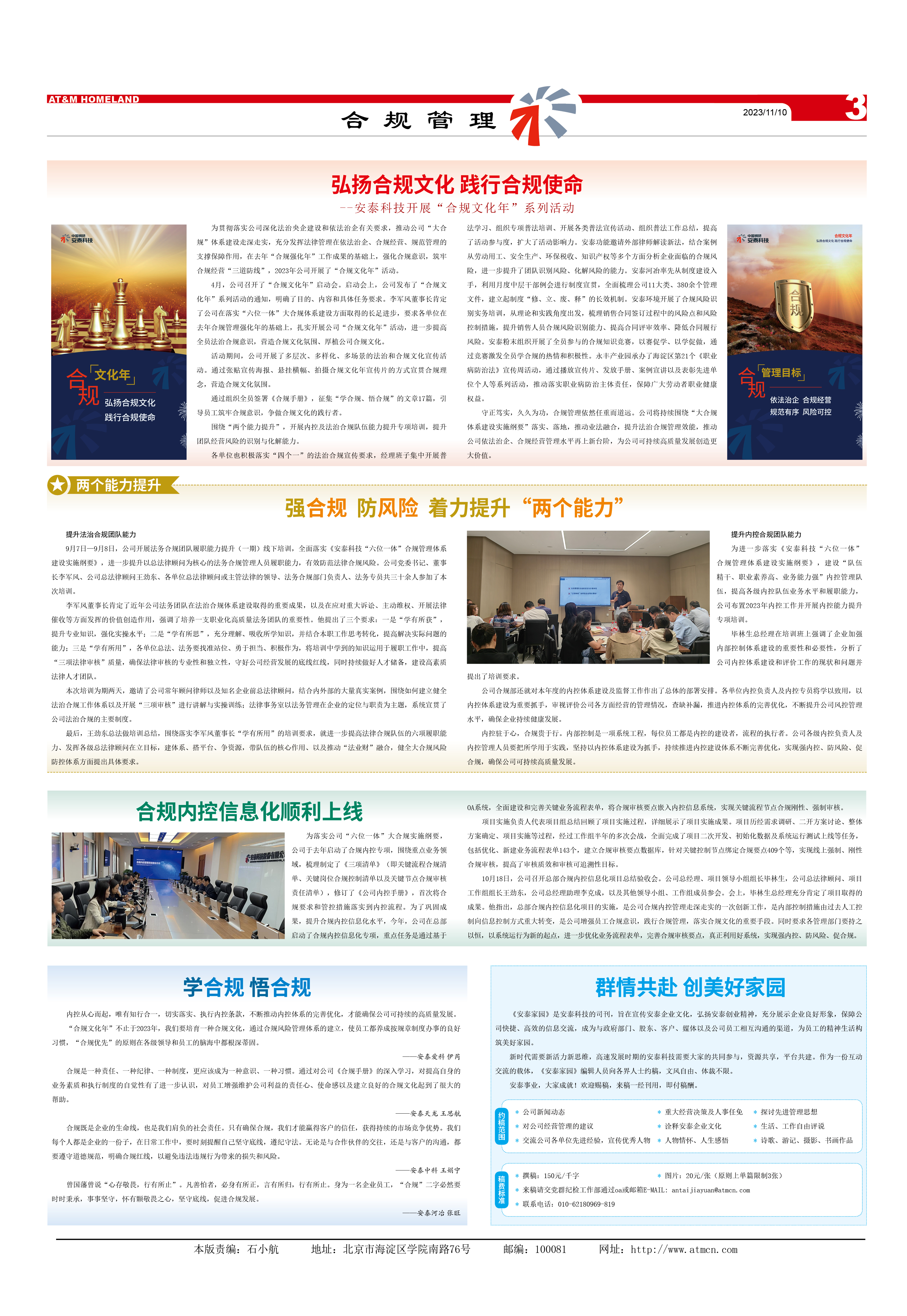 通过组织全员签署《合规手册》,征集“学合规、悟合规”的文章17篇,引导员工筑牢合规意识,争做合规文化的践行者。