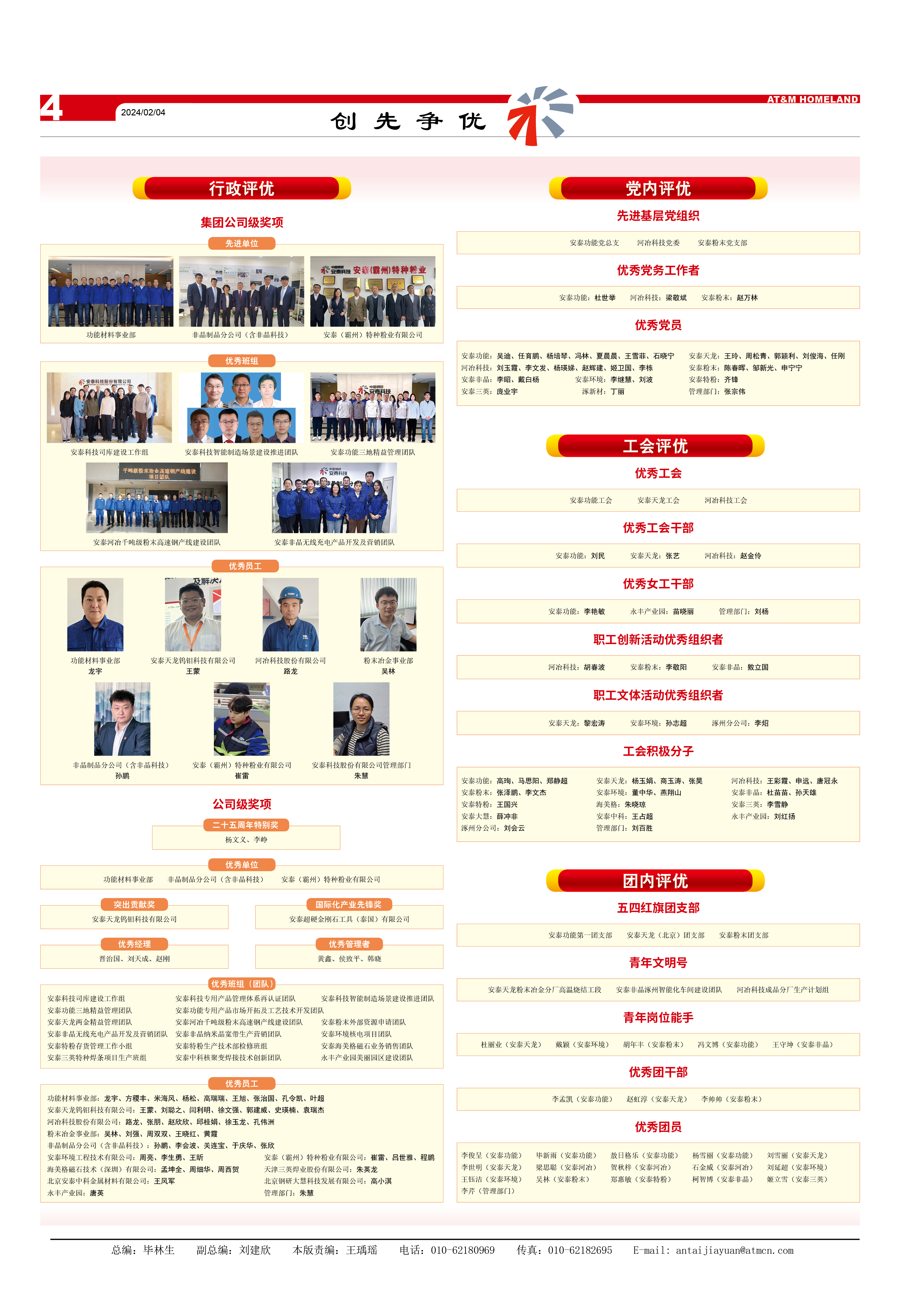 李俊呈(安泰功能)、毕新雨(安泰功能)、敖日格乐(安泰功能)、杨雪丽(安泰功能)、刘雪丽(安泰天龙)、李世明(安泰天龙)、梁思聪(安泰河冶)、贺秋梓(安泰河冶)、石金威(安泰河冶)、刘延超(安泰环境)、王钰洁(安泰环境)、吴林(安泰粉末)、郑惠敏(安泰特粉)、柯智博(安泰非晶)、姬立雪(安泰三英)、李芹(管理部门)